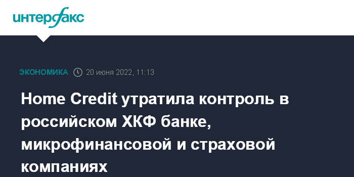 Москва. 20 июня. INTERFAX.RU - Home Credit B.V. сократила доли в российском ХКФ банке, СК "Хоум кредит страхование" и микрокредитной компании "Купи не копи" до 49,5%, утратив контроль.
