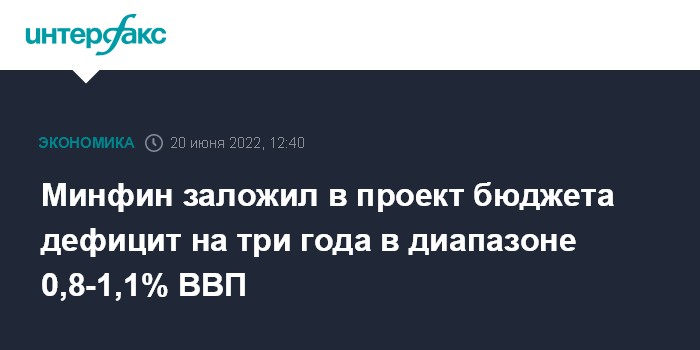 Москва. 20 июня. INTERFAX.RU - Минфин РФ закладывает в проект бюджета на 2023-2025 гг дефицит на протяжении всей предстоящей трехлетки. Об этом сообщил "Интерфаксу" источник, знакомый с проектом Основных направлений бюджетной, налоговой и таможенно-тарифной политики на 2023 год и на плановый период 2024 и 2025 годов, подготовленным ведомством.