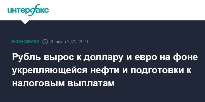 Как отмечают эксперты "Интерфакс-ЦЭА", рубль укрепился к доллару и евро по итогам торгов понедельника, отыграв снижение на утренней сессии. Поддержку котировкам в течение дня оказал повышенный спрос со стороны компаний-экспортеров на рублевую ликвидность при подготовке к пику налоговых выплат июня, а также перешедшая к повышению нефть.