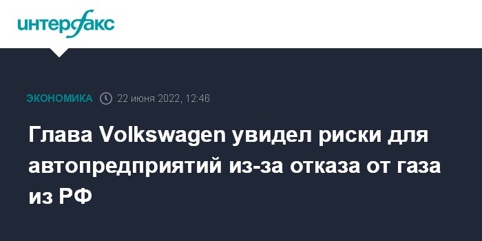 Москва. 22 июня. INTERFAX.RU - Переход Германии с российских энергоресурсов на другие источники происходит недостаточно быстро, чтобы оградить немецкий автоконцерн Volkswagen от неожиданного прекращения поставок природного газа, заявил гендиректор Герберт Дисс.