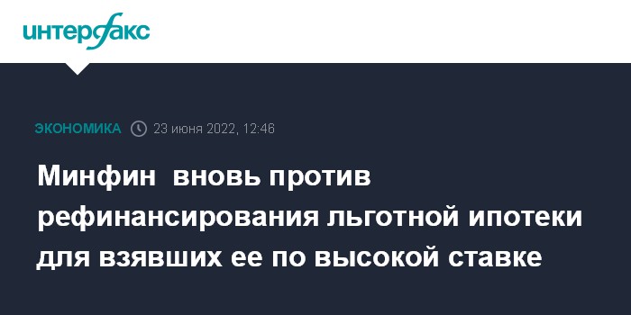 Минфин вновь против рефинансирования льготной ипотеки для взявших ее по высокой ставке