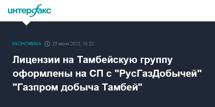 Лицензии на Тамбейскую группу оформлены на СП с "РусГазДобычей" "Газпром добыча Тамбей"