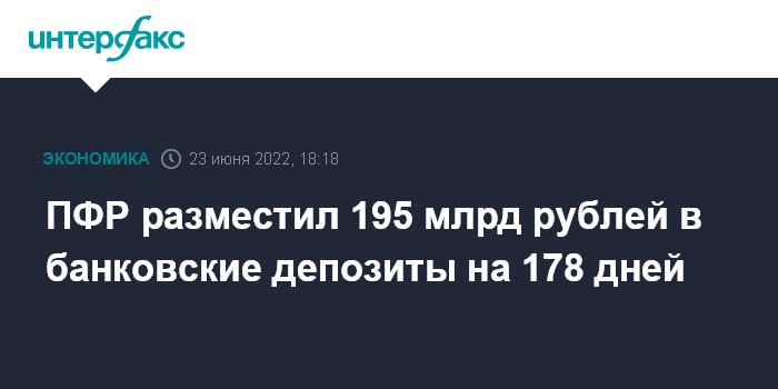 ПФР разместил 195 млрд рублей в банковские депозиты на 178 дней