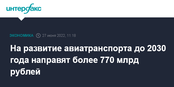 На развитие авиатранспорта до 2030 года направят более 770 млрд рублей