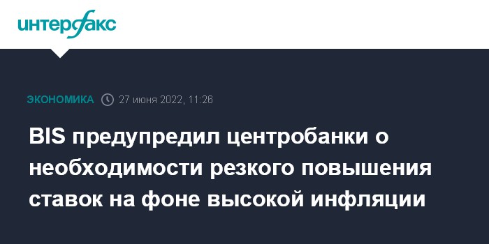 BIS предупредил центробанки о необходимости резкого повышения ставок на фоне высокой инфляции