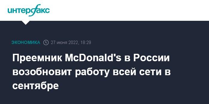 Преемник McDonald's в России возобновит работу всей сети в сентябре