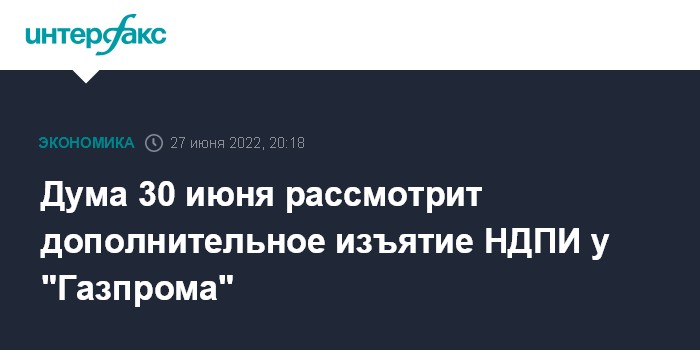 Дума 30 июня рассмотрит дополнительное изъятие НДПИ у "Газпрома"