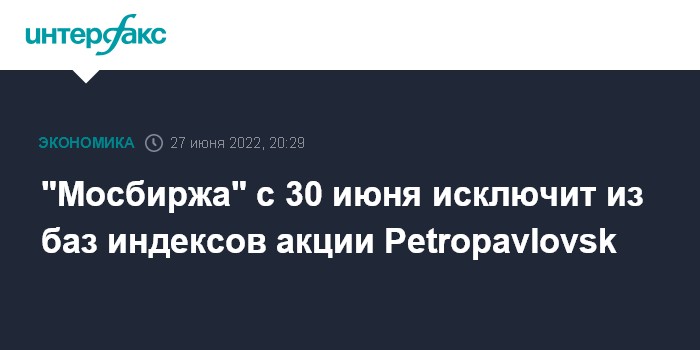 Базы индексов "Мосбиржи" пересматриваются ежеквартально, действующие базы расчетов индексов введены с 17 июня. База расчета Индекса МосБиржи и Индекса РТС включала 42 акции. Акции Petropavlovsk с этого времени находились в листе ожидания на исключение из индексов. Их вес в расчете основных индексов биржи составлял 0,12%.