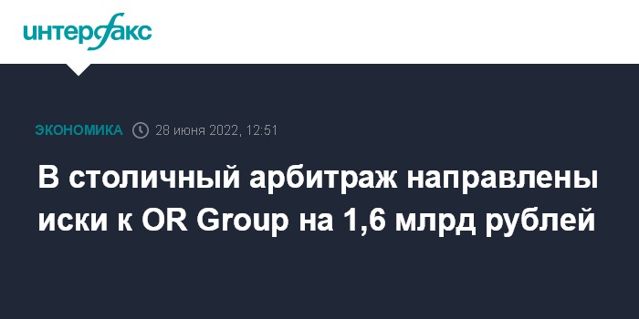 В столичный арбитраж направлены иски к OR Group на 1,6 млрд рублей