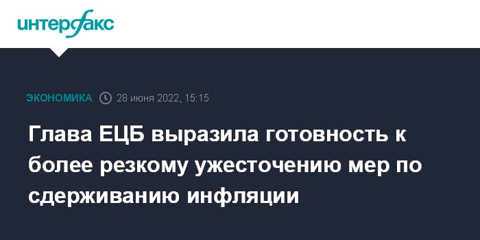Глава ЕЦБ выразила готовность к более резкому ужесточению мер по сдерживанию инфляции
