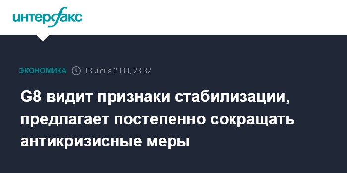 G8 видит признаки стабилизации, предлагает постепенно сокращать антикризисные меры
