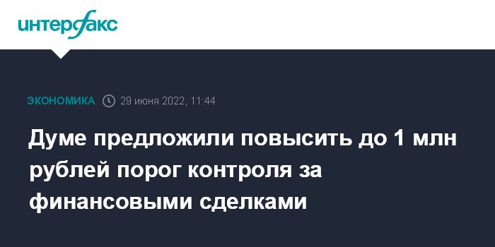 Москва. 29 июня. INTERFAX.RU - Комитет Госдумы по финансовому рынку добрил поправки в законодательство, которые повышают порог контроля за финансовыми сделками со стороны Росфинмониторинга с 600 тысяч до 1 млн рублей.