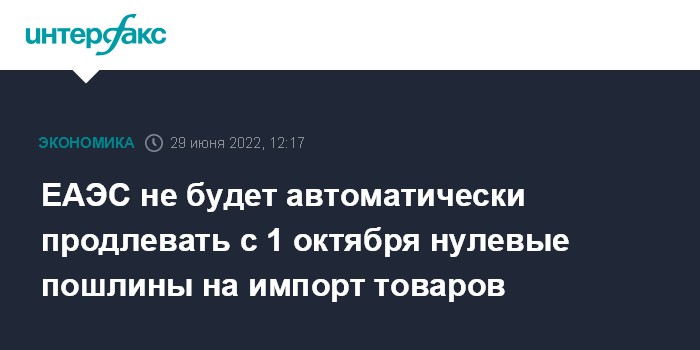 ЕАЭС не будет автоматически продлевать с 1 октября нулевые пошлины на импорт товаров