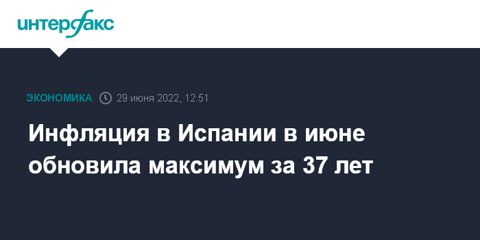 Инфляция в Испании в июне обновила максимум за 37 лет