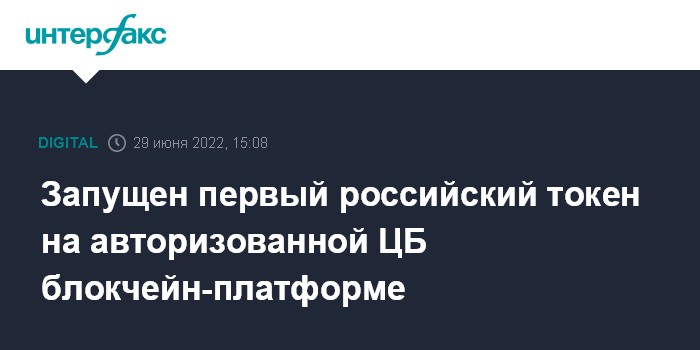 Запущен первый российский токен на авторизованной ЦБ блокчейн-платформе