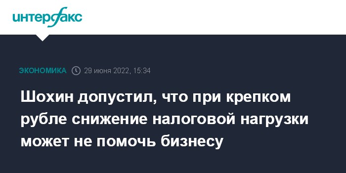 Шохин допустил, что при крепком рубле снижение налоговой нагрузки может не помочь бизнесу