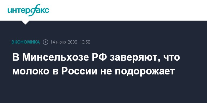 Москва. 14 июня. INTERFAX.RU - Цены на молочную продукцию в РФ "ни в коем случае" не поднимутся в связи с ограничением поставок молока из Белоруссии, заявила эфире радиостанции "Эхо Москвы" министр сельского хозяйства РФ Елена Скрынник.