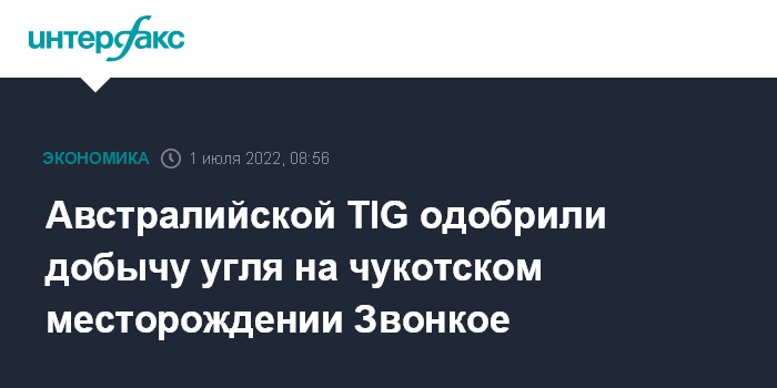 Австралийской TIG одобрили добычу угля на чукотском месторождении Звонкое