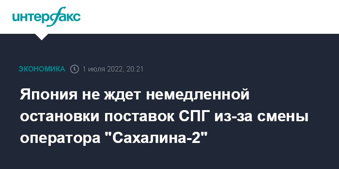 Москва. 1 июля. INTERFAX.RU - Японские власти не ожидают, что смена оператора нефтегазового проекта "Сахалин-2" приведет к немедленной остановке поставок российского сжиженного природного газа (СПГ), заявил премьер-министр Японии Фумио Кисида, слова которого приводит газета Financial Times.