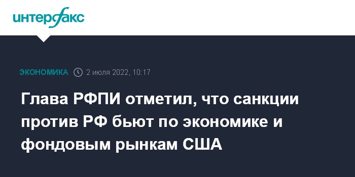 Москва. 2 июля. INTERFAX.RU - Санкции против России бьют по экономике и фондовым рынкам США, считает глава Российского фонда прямых инвестиций (РФПИ) Кирилл Дмитриев.