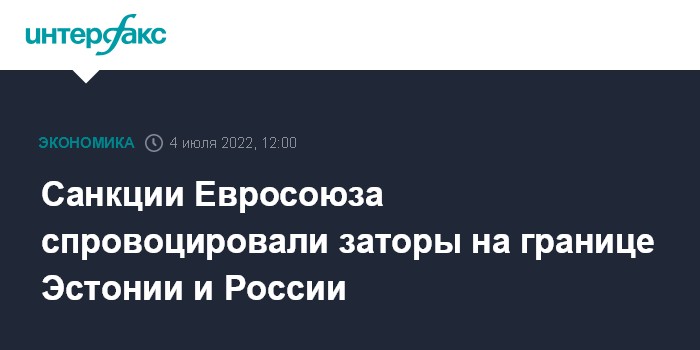 Москва. 4 июля. INTERFAX.RU - Санкции Евросоюза против России привели к заторам на эстонско-российской границе и к изменениям в работе логистических компаний, сообщает эстонский портал телерадиовещания ERR.