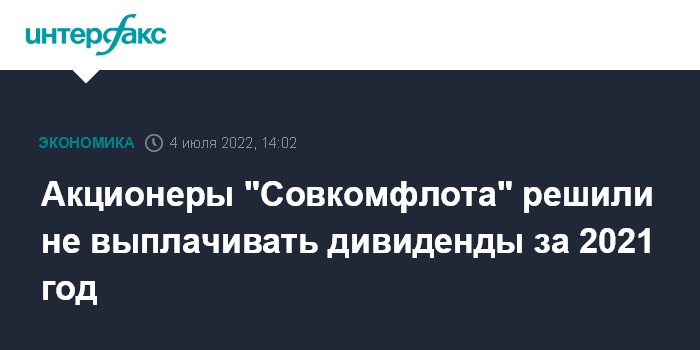 Москва. 4 июля. INTERFAX.RU - Акционеры "Совкомфлота" на годовом собрании, которое состоялось 30 июня, поддержали решение о невыплате дивидендов за 2021 год, говорится в сообщении компании.