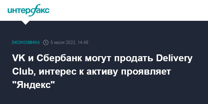 По данным The Bell, продажа Delivery Club пока находится в стадии переговоров, финального решения по сделке нет. При этом "Яндекс" будет готов приобрести сервис доставки еды при условии, что и VK, и Сбербанк будут готовы полностью выйти из Delivery Club.