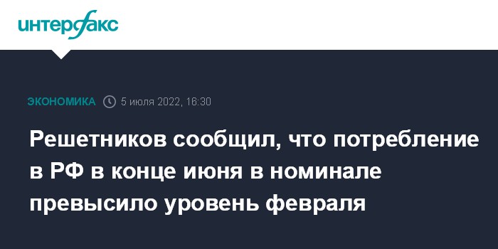 Решетников сообщил, что потребление в РФ в конце июня в номинале превысило уровень февраля