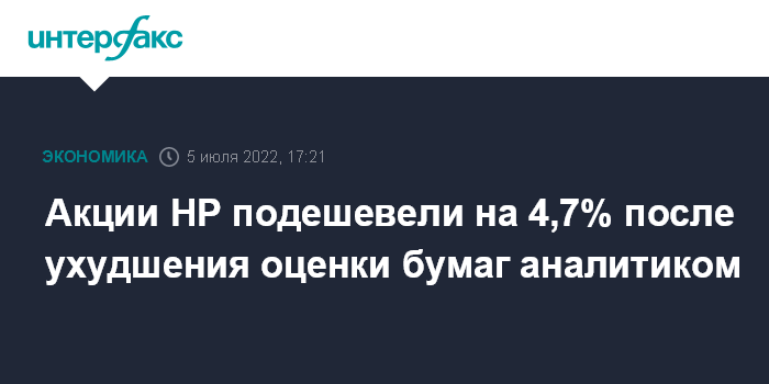 Акции HP подешевели на 4,7% после ухудшения оценки бумаг аналитиком