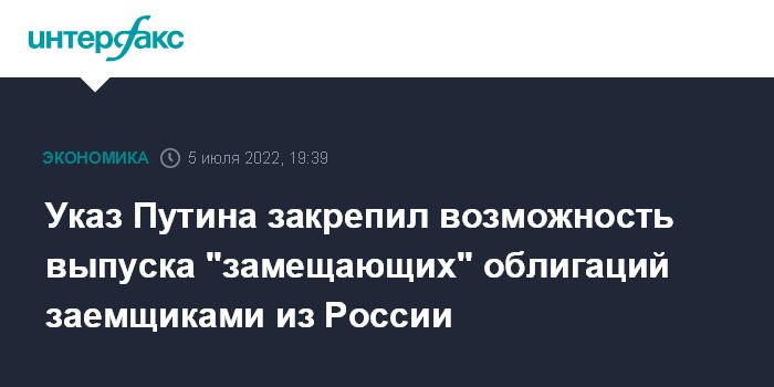 Указ Путина закрепил возможность выпуска "замещающих" облигаций заемщиками из России