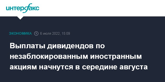 Выплаты дивидендов по незаблокированным иностранным акциям начнутся в середине августа