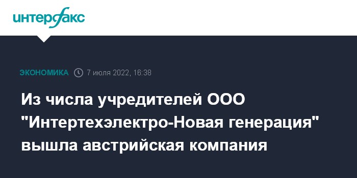 Из числа учредителей ООО "Интертехэлектро-Новая генерация" вышла австрийская компания