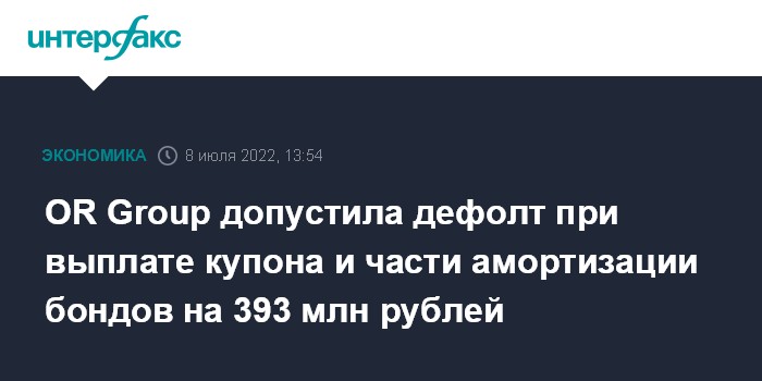 OR Group допустила дефолт при выплате купона и части амортизации бондов на 393 млн рублей
