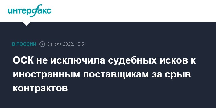 ОСК не исключила судебных исков к иностранным поставщикам за срыв контрактов