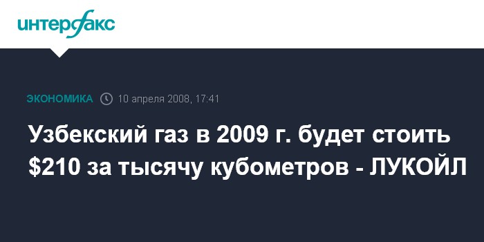 Узбекский газ в 2009 г. будет стоить $210 за тысячу кубометров - ЛУКОЙЛ