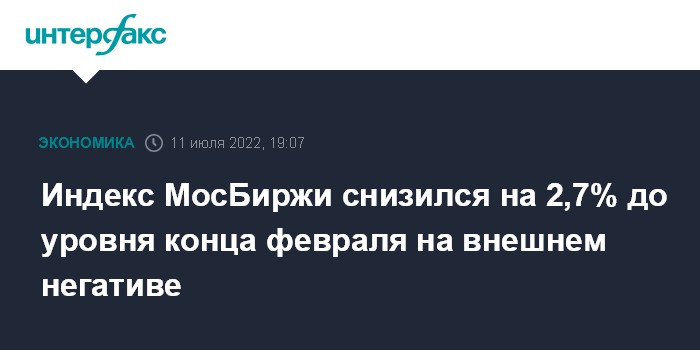 Индекс МосБиржи снизился на 2,7% до уровня конца февраля на внешнем негативе