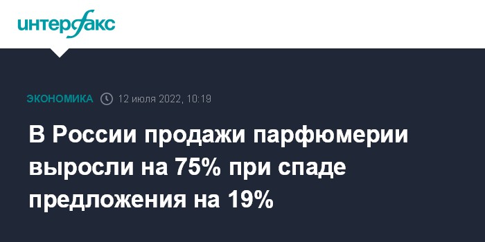 Москва. 12 июля. INTERFAX.RU - В России в I полугодии 2022 года розничные продажи парфюмерии с учетом интернет-продаж увеличились на 75%, до 39,6 млн единиц с 22,6 млн в первом полугодии прошлого года, свидетельствуют данные системы маркировки.