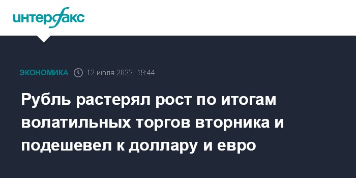 Москва. 12 июля. INTERFAX.RU - Доллар США и евро отыграли потери середины дня и укрепились на "Московской бирже" по итогам торгов вторника. Рубль подешевел к бивалютной корзине на закрытии позиций после дневного скачка в обеих парах на заявлении ЦБ РФ о том, что регулятор продолжит стимулировать банки отказываться от "недружественных" валют, развивать рынок "дружественных".