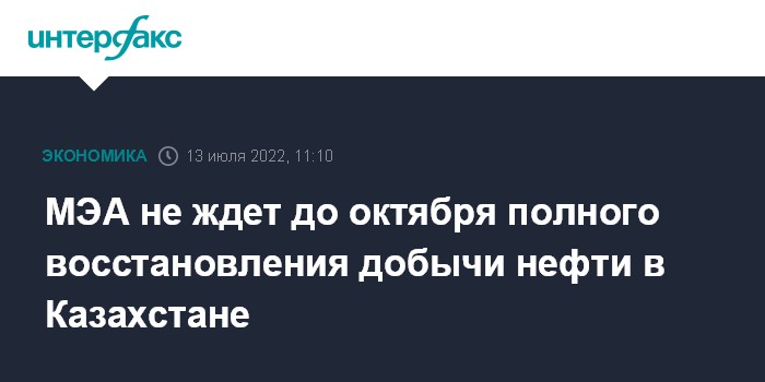 МЭА не ждет до октября полного восстановления добычи нефти в Казахстане