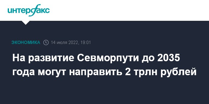 Москва. 14 июля. INTERFAX.RU - Правительство до 1 августа 2022 года утвердит план развития Северного морского пути (СМП) на период до 2035 года. Проект документа был рассмотрен на совещании, прошедшем под руководством вице-премьера - полпреда президента на Дальнем Востоке Юрия Трутнева.