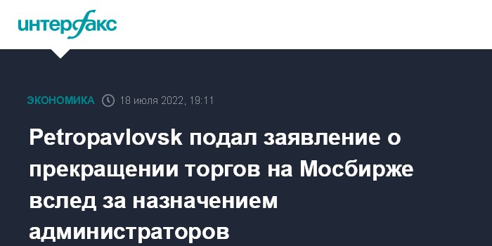 Petropavlovsk подал заявление о прекращении торгов на Мосбирже вслед за назначением администраторов