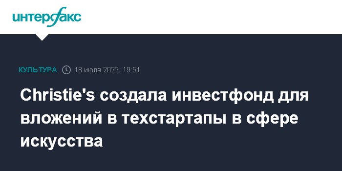 Москва. 18 июля. INTERFAX.RU - Крупнейший в мире аукционный дом Christie's запустил собственный инвестиционный фонд Christie's Ventures, который сосредоточится на финансировании технологических стартапов в сфере искусства.