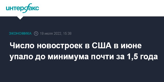 Число новостроек в США в июне упало до минимума почти за 1,5 года