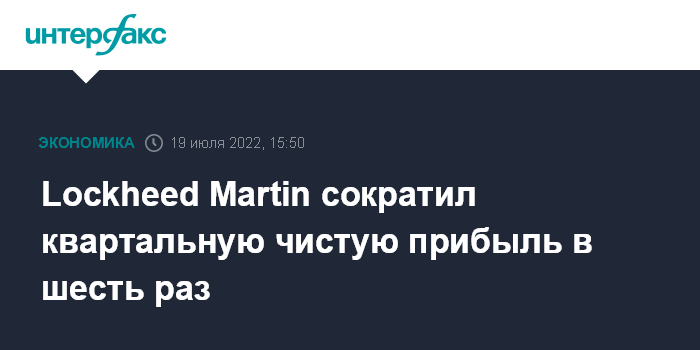 Москва. 19 июля. INTERFAX.RU - Американский военно-промышленный концерн Lockheed Martin во втором квартале 2022 года зафиксировал чистую прибыль и выручку ниже прогнозов рынка.