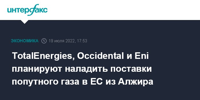 TotalEnergies, Occidental и Eni планируют наладить поставки попутного газа в ЕС из Алжира