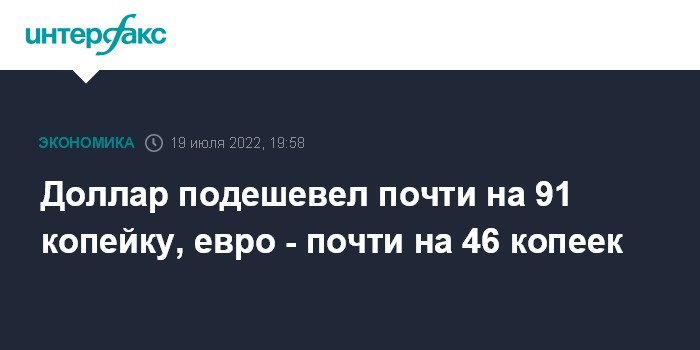 Доллар подешевел почти на 91 копейку, евро - почти на 46 копеек