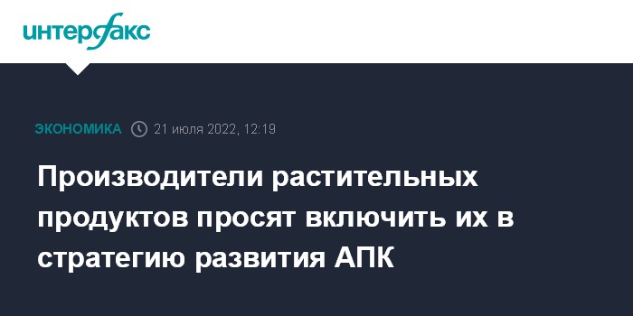 Как сообщили "Интерфаксу" в союзе, предлагается выделить в стратегии отдельное направление - "продукты на растительной основе", чтобы стимулировать развитие отрасли на основе долгосрочного планирования.