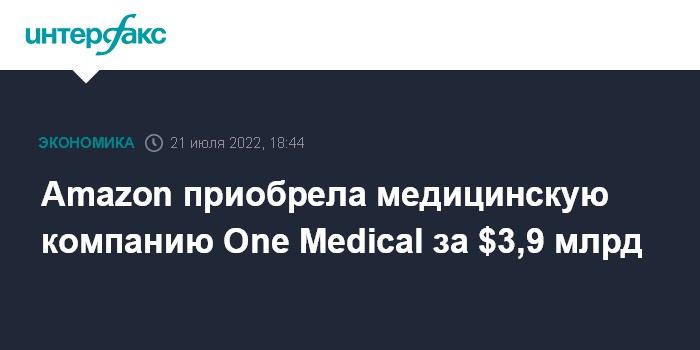 Москва. 21 июля. INTERFAX.RU - Американский интернет-ритейлер Amazon.com Inc. подписал соглашение о покупке компании One Medical, оказывающей первичную медико-санитарную помощь.