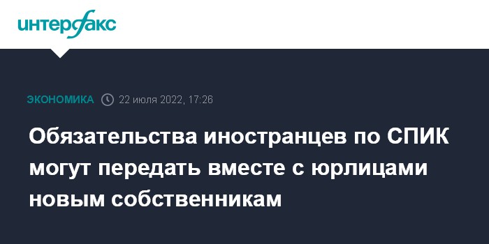 Обязательства иностранцев по СПИК могут передать вместе с юрлицами новым собственникам