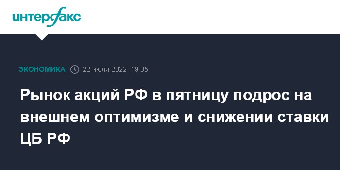 Рынок акций РФ в пятницу подрос на внешнем оптимизме и снижении ставки ЦБ РФ